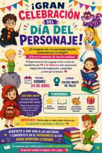 El viernes 24 de abril, los estudiantes desde Prekínder a 6° básico participarán en el Día del Personaje, una de las actividades más esperadas de la semana.
