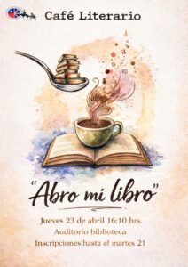 | Jueves 23 | Café literario | Profesores | 16:15 – 17:10 hrs | Biblioteca |