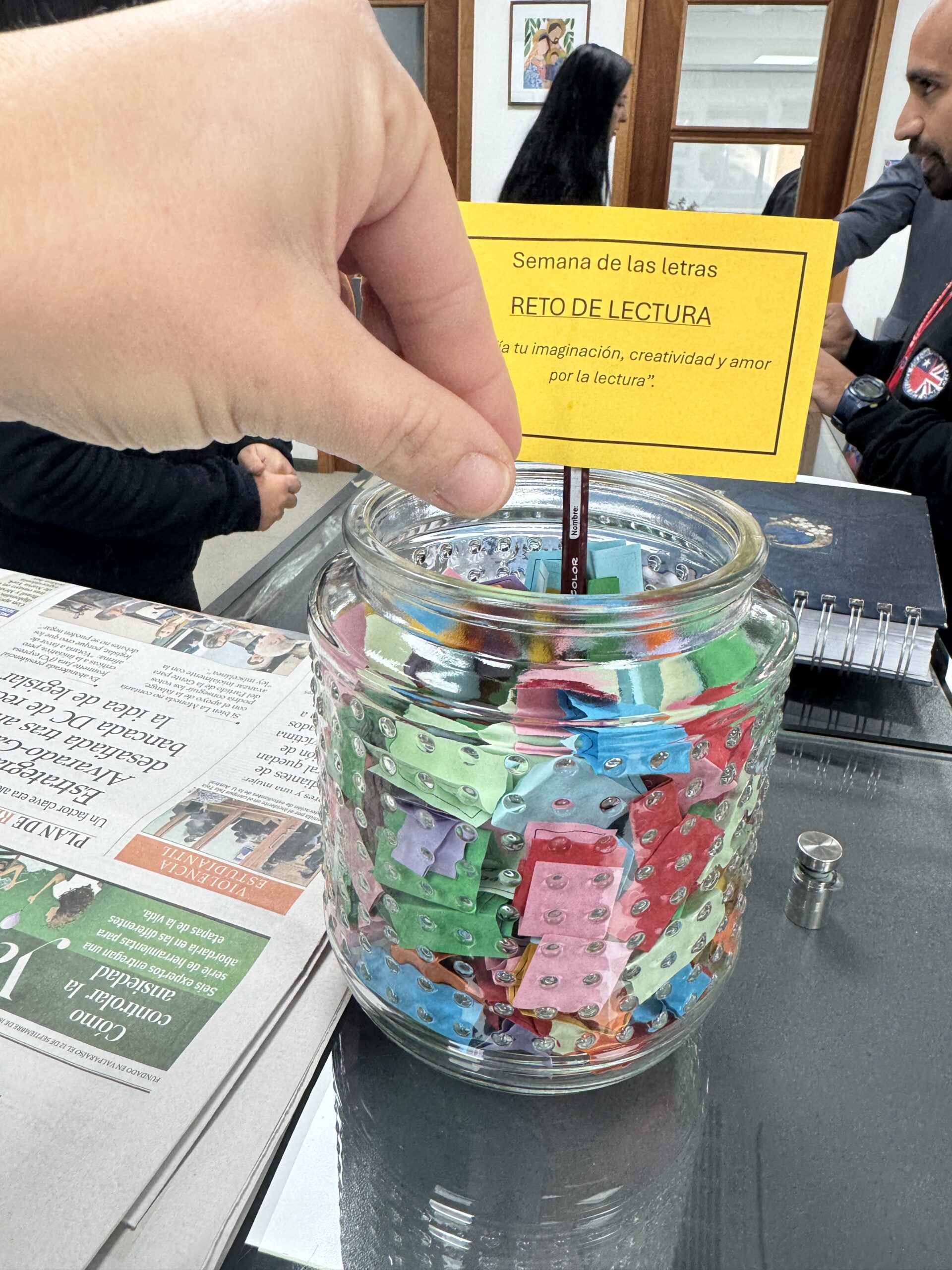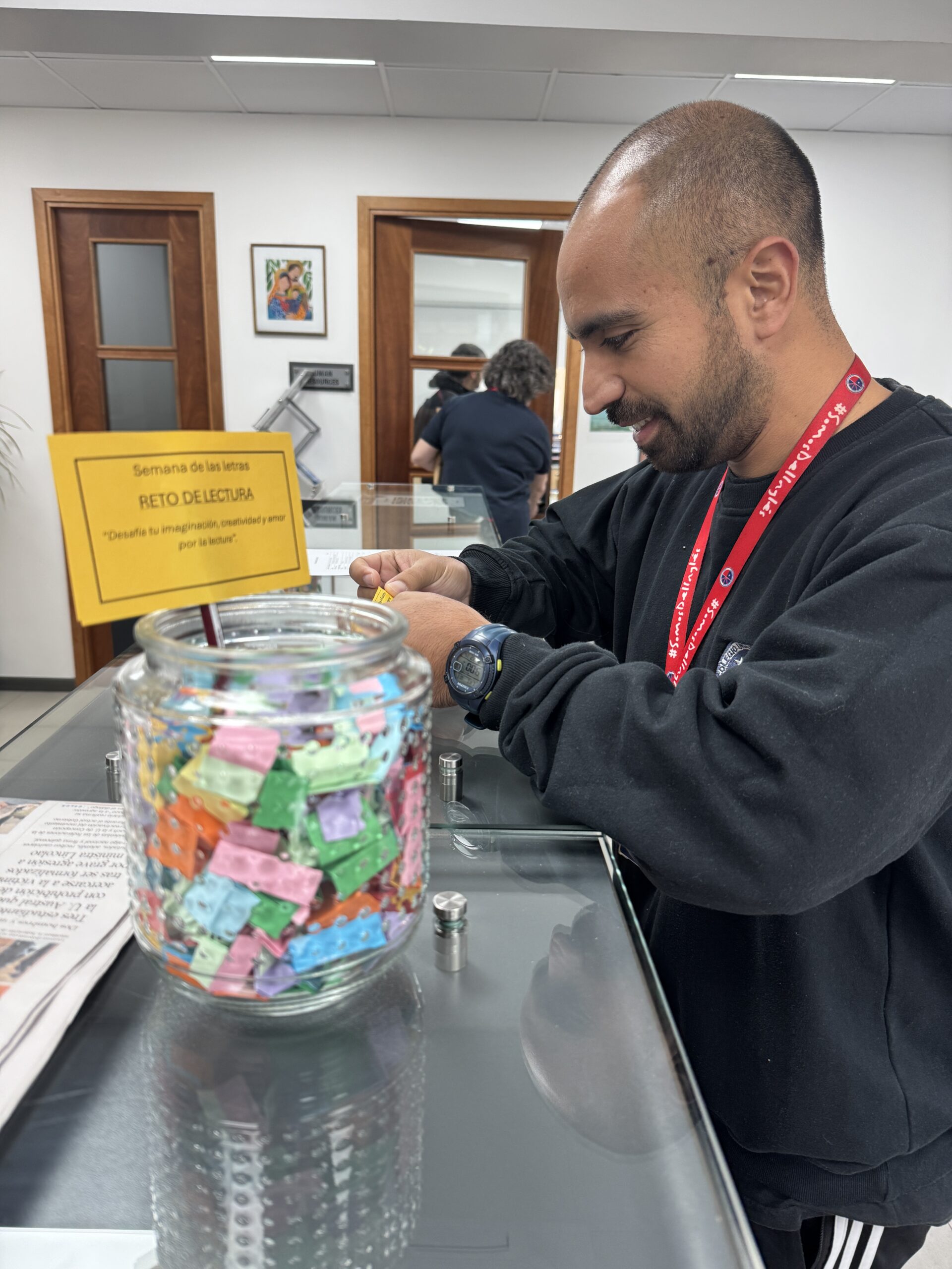 La iniciativa consiste en participar de distintos retos literarios disponibles en recipientes ubicados en los mesones de Biblioteca y Administración. Cada desafío propone actividades breves y dinámicas, vinculadas a la lectura y la escritura, fomentando la creatividad y el vínculo activo con los libros.