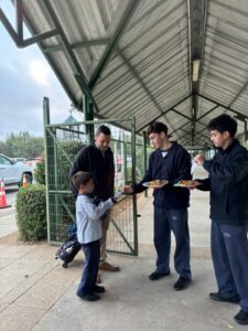 Entre las 7:30 y 7:50 horas, apoderados, estudiantes y funcionarios fueron recibidos con la entrega de poemas acompañados de dulces, en un gesto que buscó sorprender, emocionar e invitar a comenzar el día conectando con la lectura.